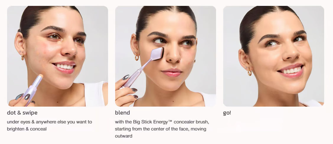 This dual-ended concealer stick combines AI filter-level blurring power with a professional blending brush, giving you an airbrushed, smooth complexion — no filter needed.