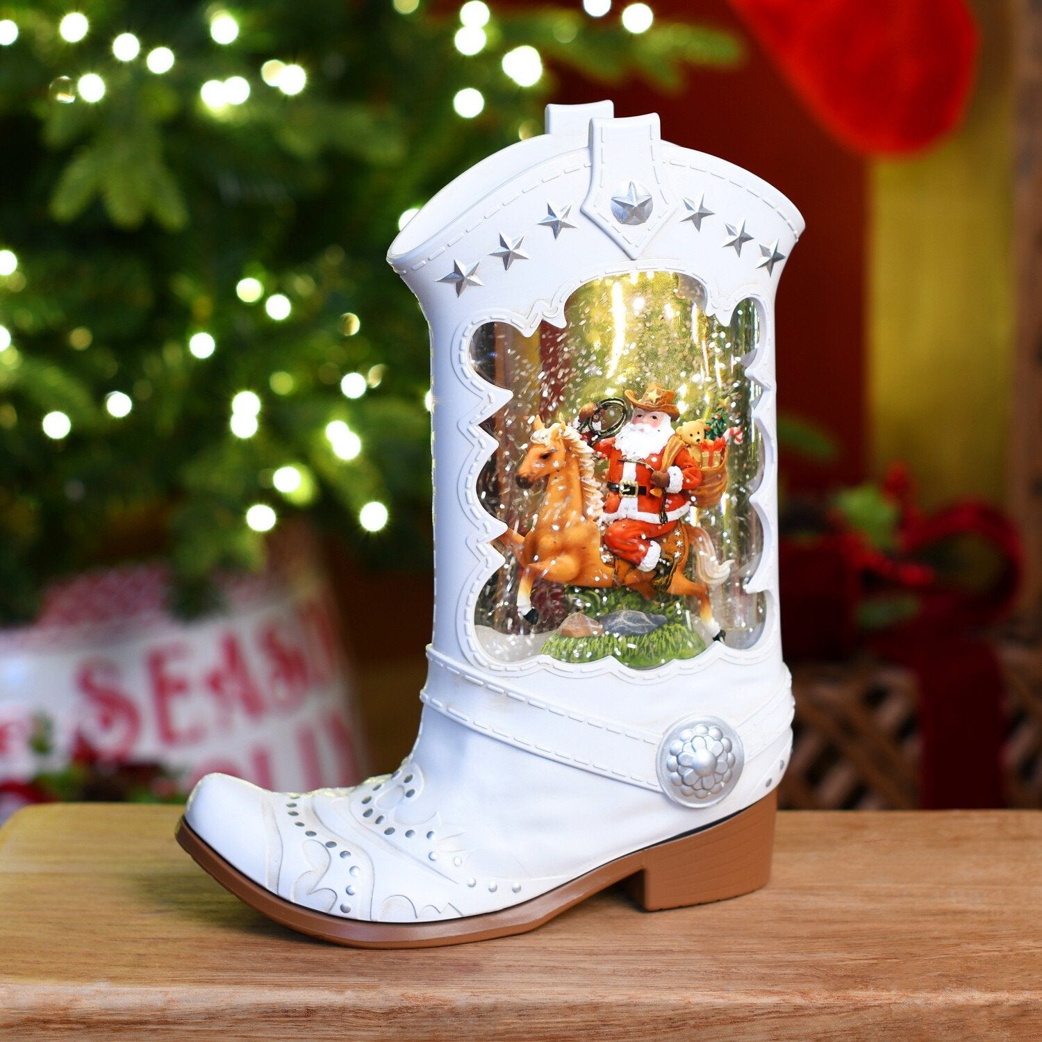 ✨ Whimsical cowboy boot design with Santa riding inside 🐴🎅