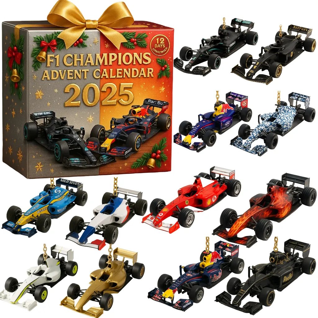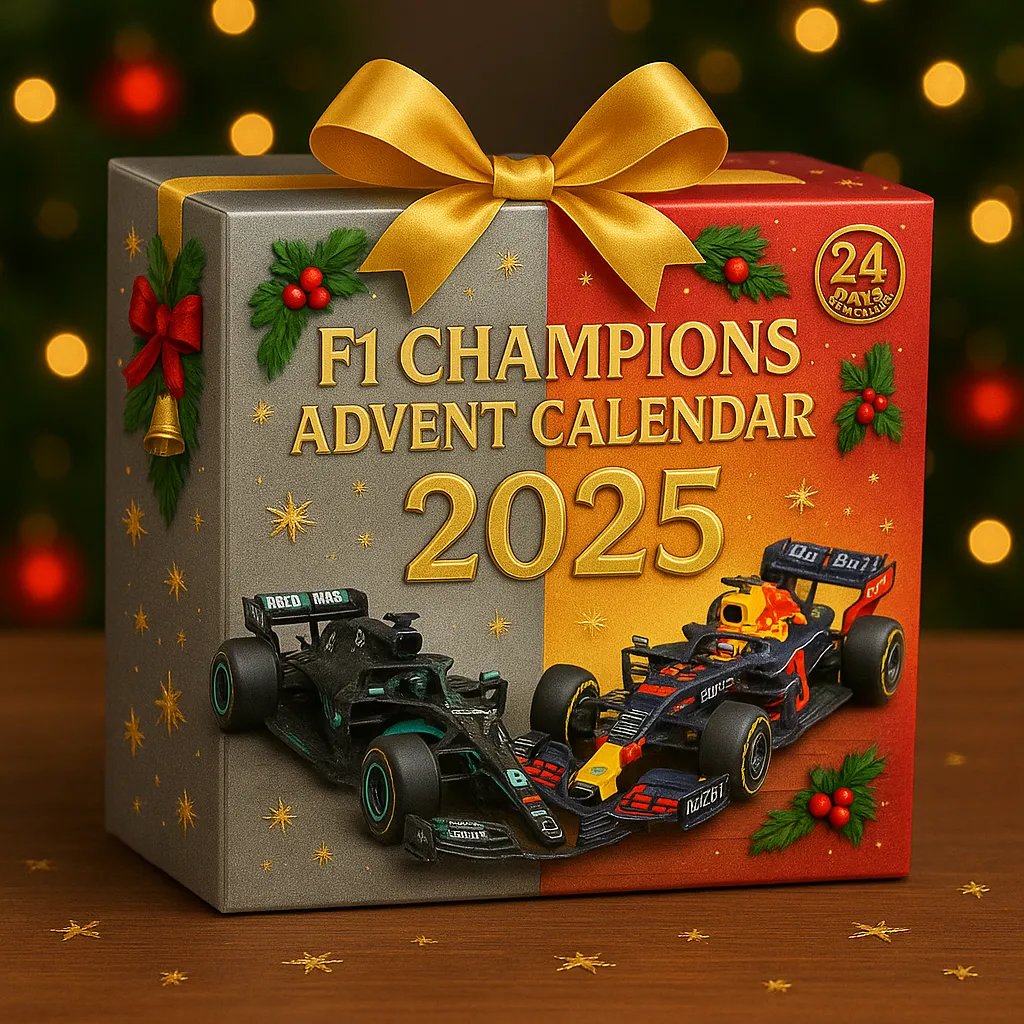 🎄 The F1 Champions Advent Calendar 2025 brings the thrill of Formula 1 to your holiday season, with 12 legendary race cars that defined speed, innovation, and victory.🏎️✨ From the roaring V10 beasts of the 90s to today’s hybrid-powered champions, every miniature model captures the soul of F1 history in stunning detail. 🔥 Classic Heroes: Schumacher’s scarlet Ferrari, Senna’s Lotus, the Renault R25 that shocked the world Modern Legends: Mercedes-AMG Black Arrow, Red Bull RB16, Ferrari’s flame-kissed fighter Golden Icons: Williams FW19, rare gold livery specials, and fan-favorite one-off designs 🏁❤️ ✨Each collectible car tells a story of engineering brilliance and racing glory, making this Advent Calendar the ultimate treasure for F1 fans and collectors.🎁💨 🎅Whether you’ve cheered since the turbo era or fell in love with today’s hybrid titans, this calendar lets you relive the magic of Formula 1—one car at a time.⏰🏎️ ✨DETAILS: