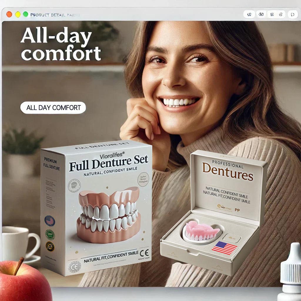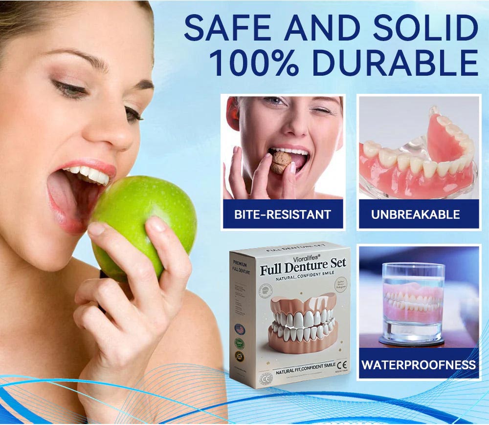 Affordable Excellence, Unmatched Value: With Vioralifes®, achieving a confident smile has never been more accessible. The Vioralifes® Denture Set combines top-tier quality with unbeatable affordability, offering a lightweight, compact solution that seamlessly integrates into your daily life. Our easy-to-follow instructions ensure a perfect fit, saving you the hassle and expense of professional visits. Whether you're at home or on the move, this denture kit delivers unparalleled convenience, comfort, and value. Experience the benefits of a high-quality product at a fraction of the cost, making it simpler than ever to invest in your smile and embrace the confidence you deserve.