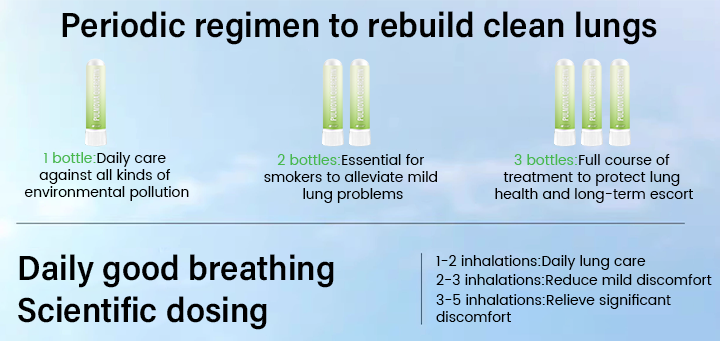 A: For daily maintenance, 1 inhale is recommended. For discomfort, increase to 2–3 inhales per day. Pulmovia’s natural, non-addictive formula is safe for medium- to long-term respiratory support and wellness routines.